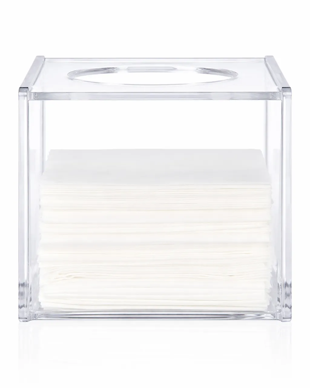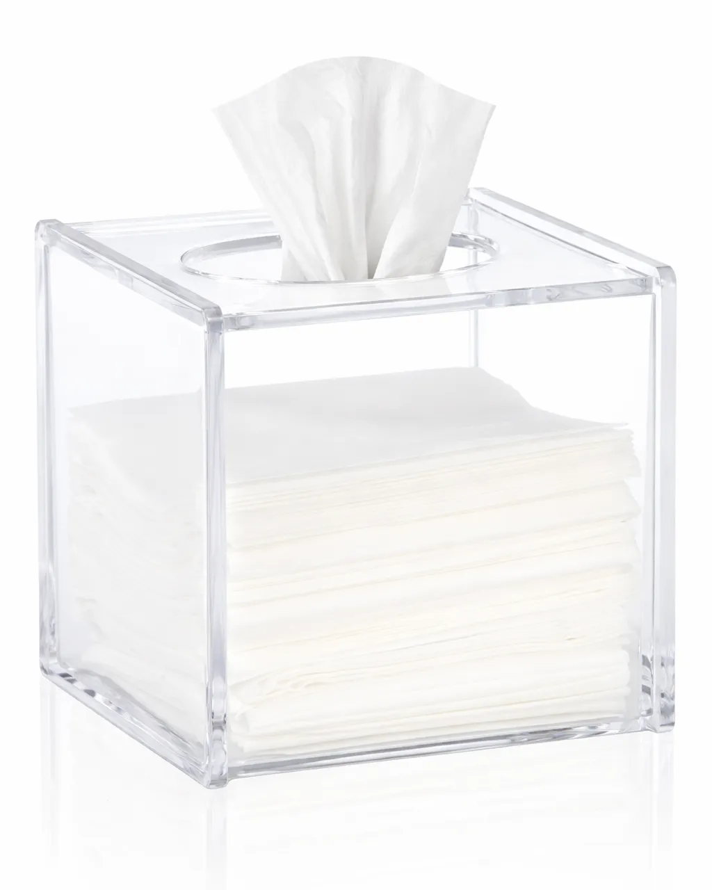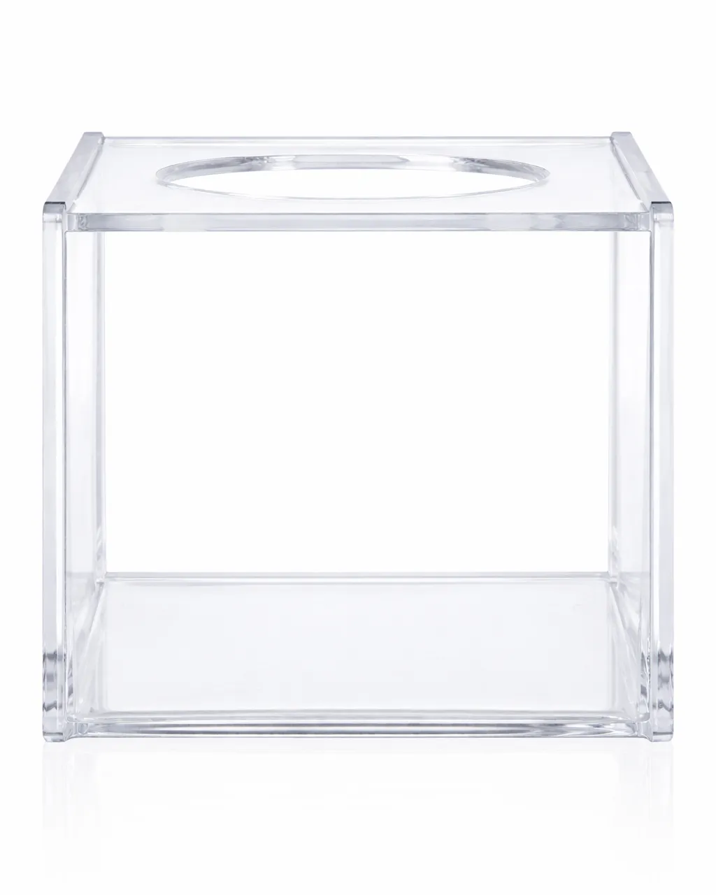 A sleek tissue box crafted from transparent acrylic, designed to showcase a clean and modern aesthetic. Its minimalist design blends effortlessly with any interior while keeping tissues neatly stored and easily accessible.