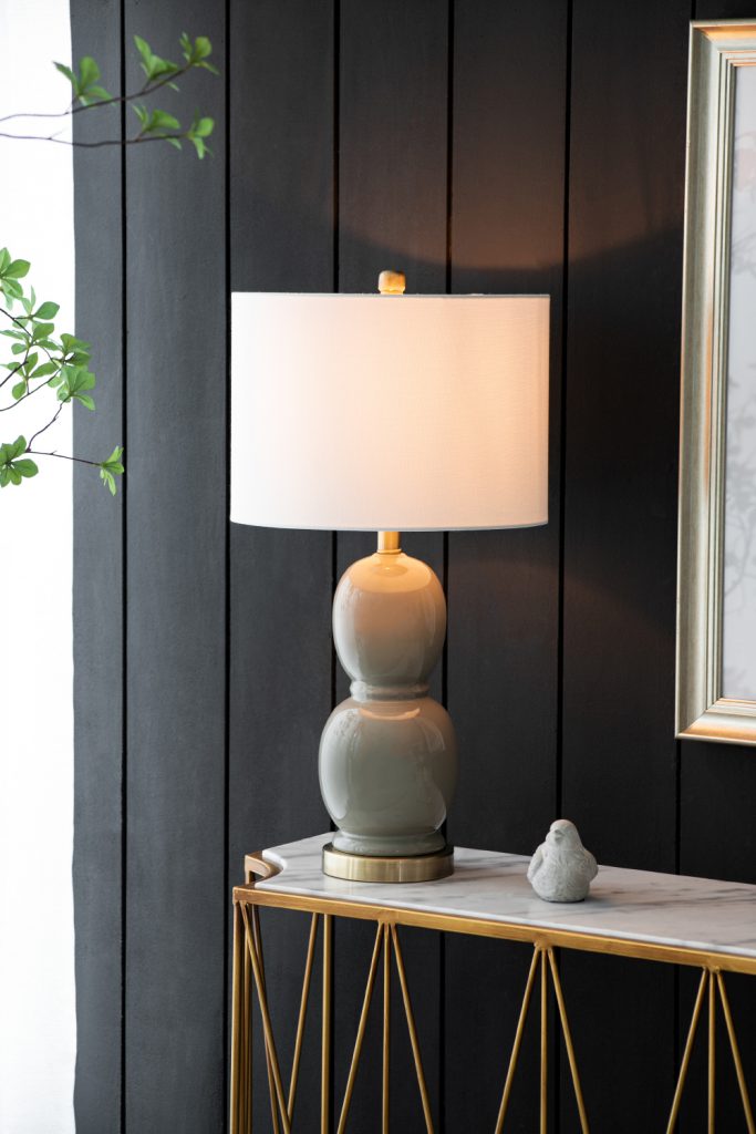 A traditional silhouette makes an impact in the Almond Ceramic Table Lamp. Its curvaceous rounded form is finished with a white linen drum shade for a clean finishing touch. Make a statement by placing this lamp in any bedroom, living room, foyer, or office. For a more dramatic effect, go with multiples.