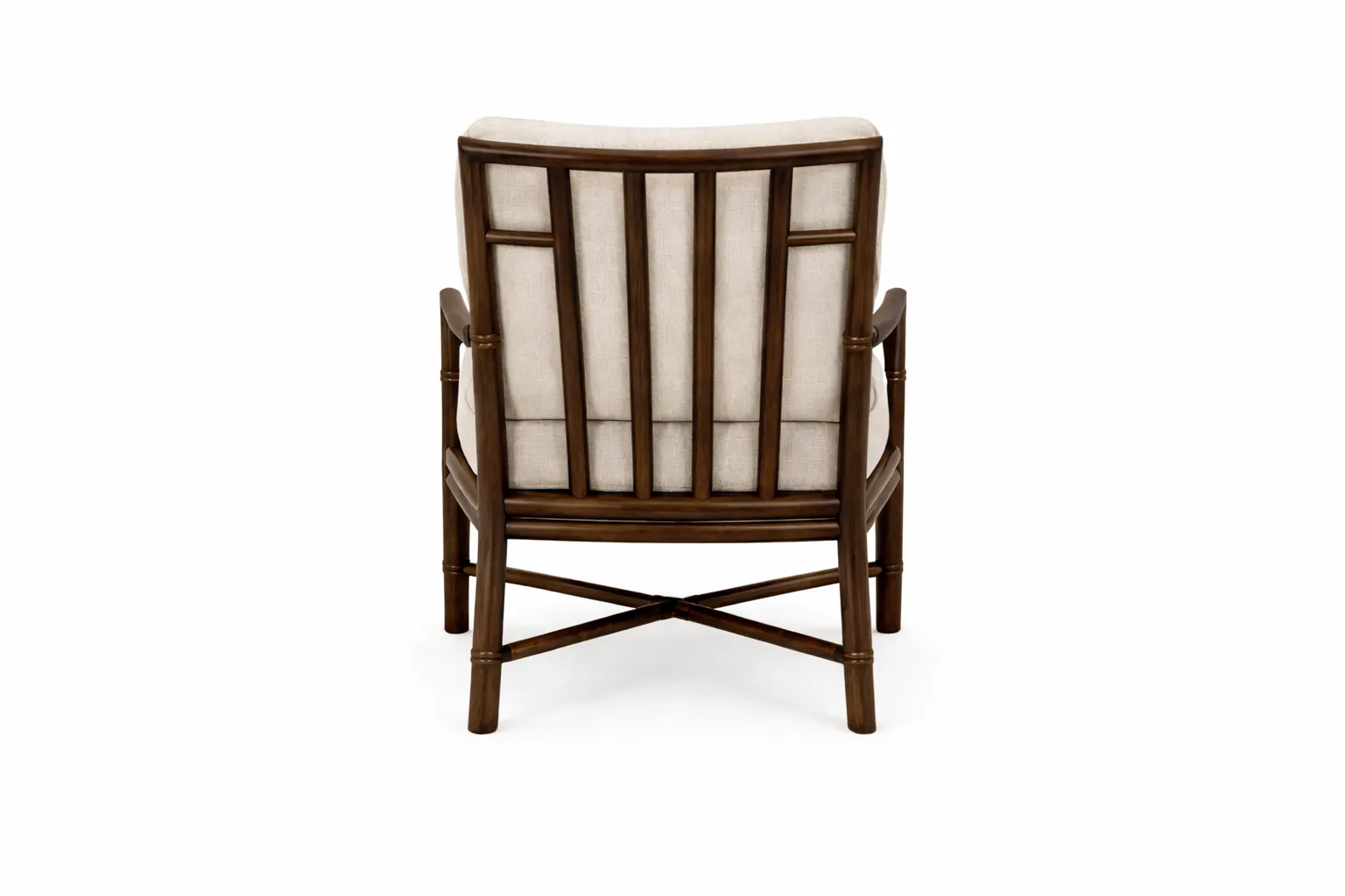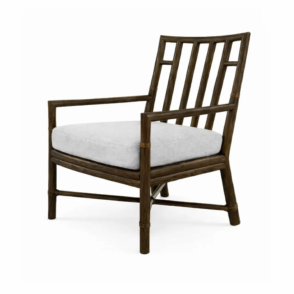 The Bercut Lounge Chair celebrates the artistry of handcrafted, bespoke design. Featuring a warm wood tone and a soft grey upholstered cushion. Its timeless design and lightweight structure.