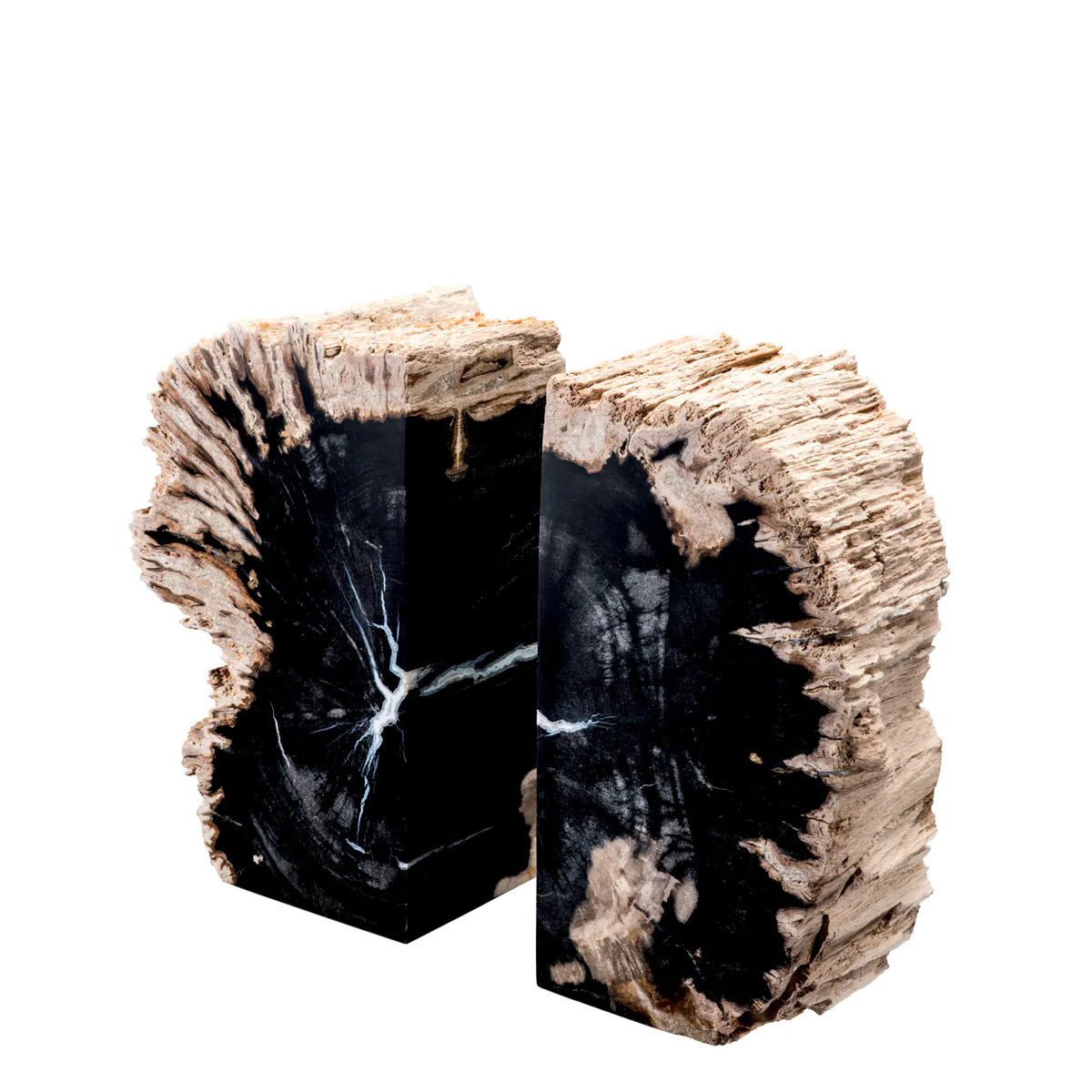 This lovely set of 2 bookends is crafted from a thick slice of petrified wood. Due to the nature of fossil matter, each bookend has a unique appearance: size and colour can vary and imperfections are common.