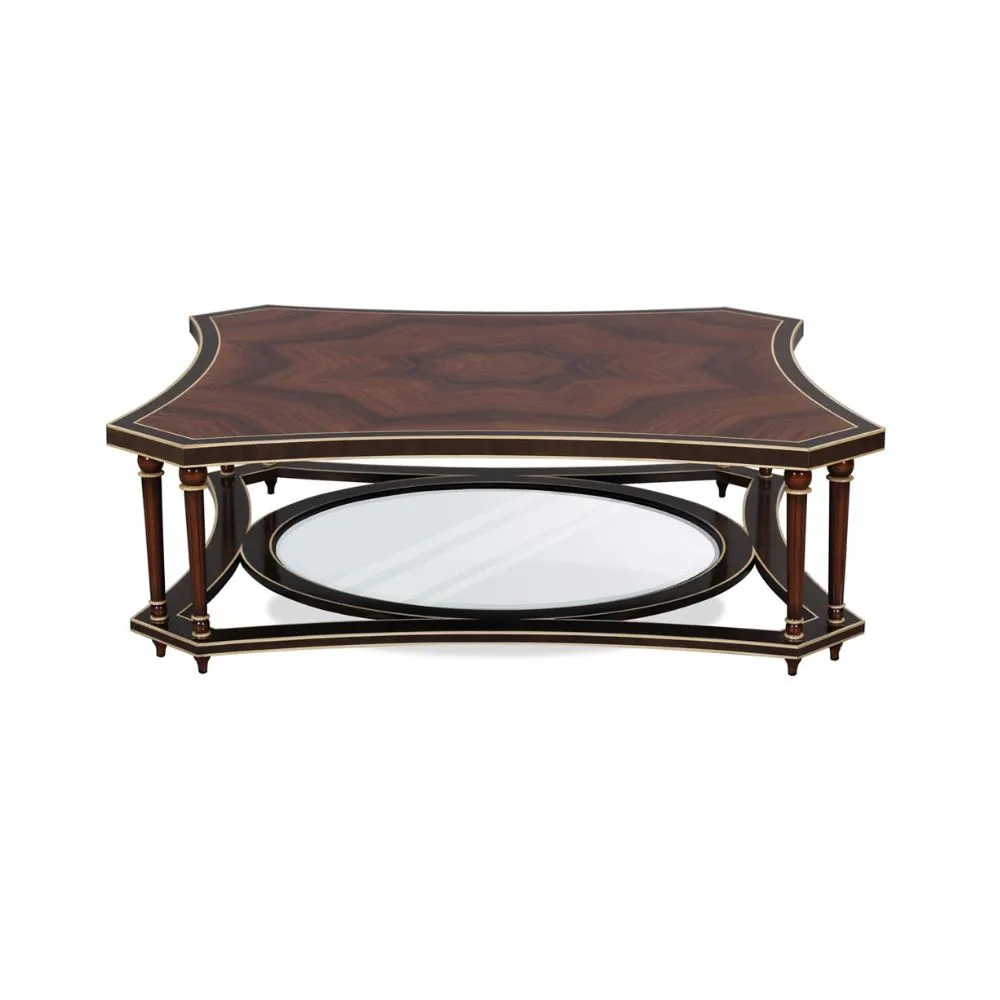 Coffee table made from a variety of veneers such as Santos Maple and Walnut. The top has a pretty octagonal veneer.