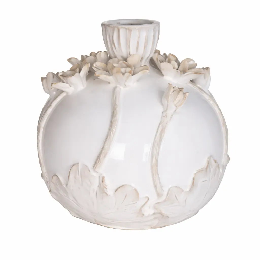 Handmade 100% ceramic vase with floral decoration.