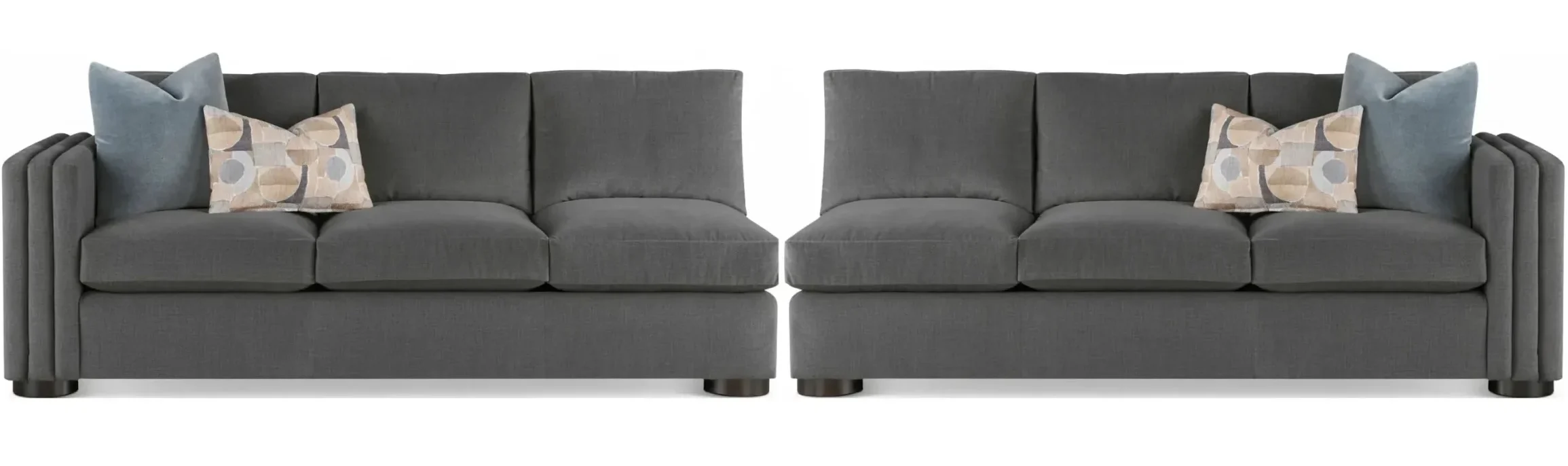 The Origins Channeled Sectional is a beautiful homage to the spirit of 1920s craftsmanship. At the arms, elegant lines draw the eye as they trace down the frame and toward shaped maple feet. Comes standard with a generously padded lumbar pillow.