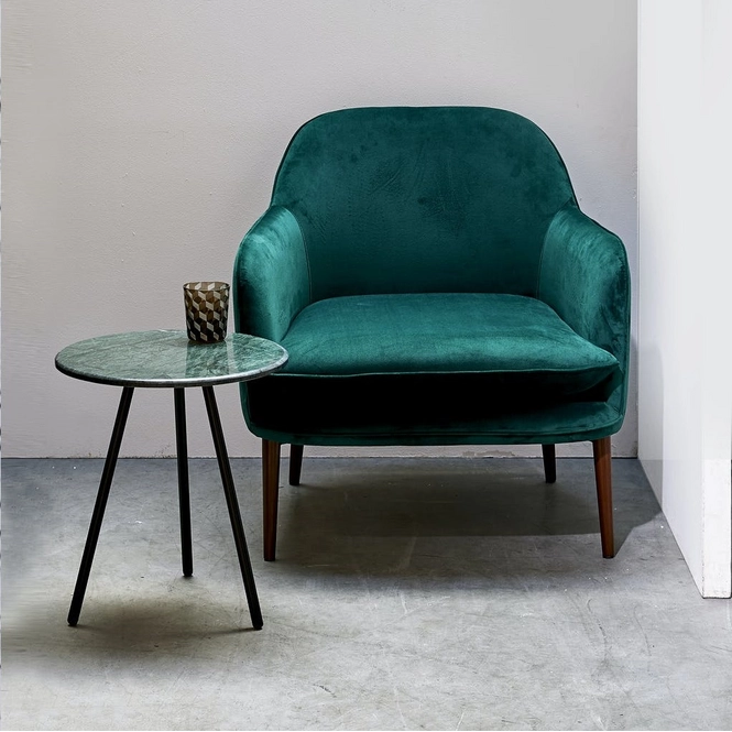 This armchair is from Pols Potten?s Charmy Velvet collection. It features a deep green color and is made from 100% velvet polyester. With its chic appearance, this chair adds an extra luxurious and classy touch to your living room or bedroom. You can relax in complete comfort without losing your charm in this chair?hence the name Charmy.