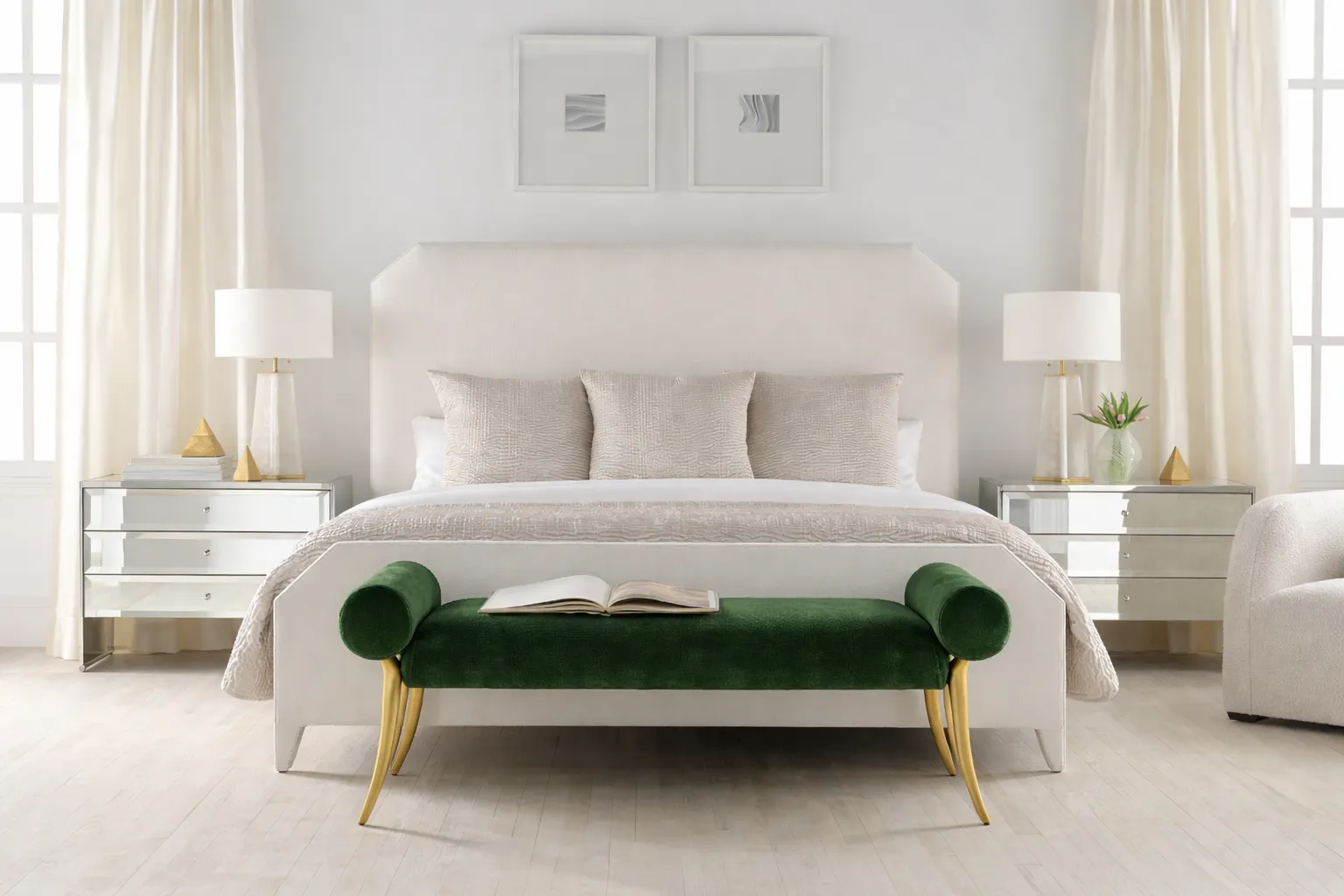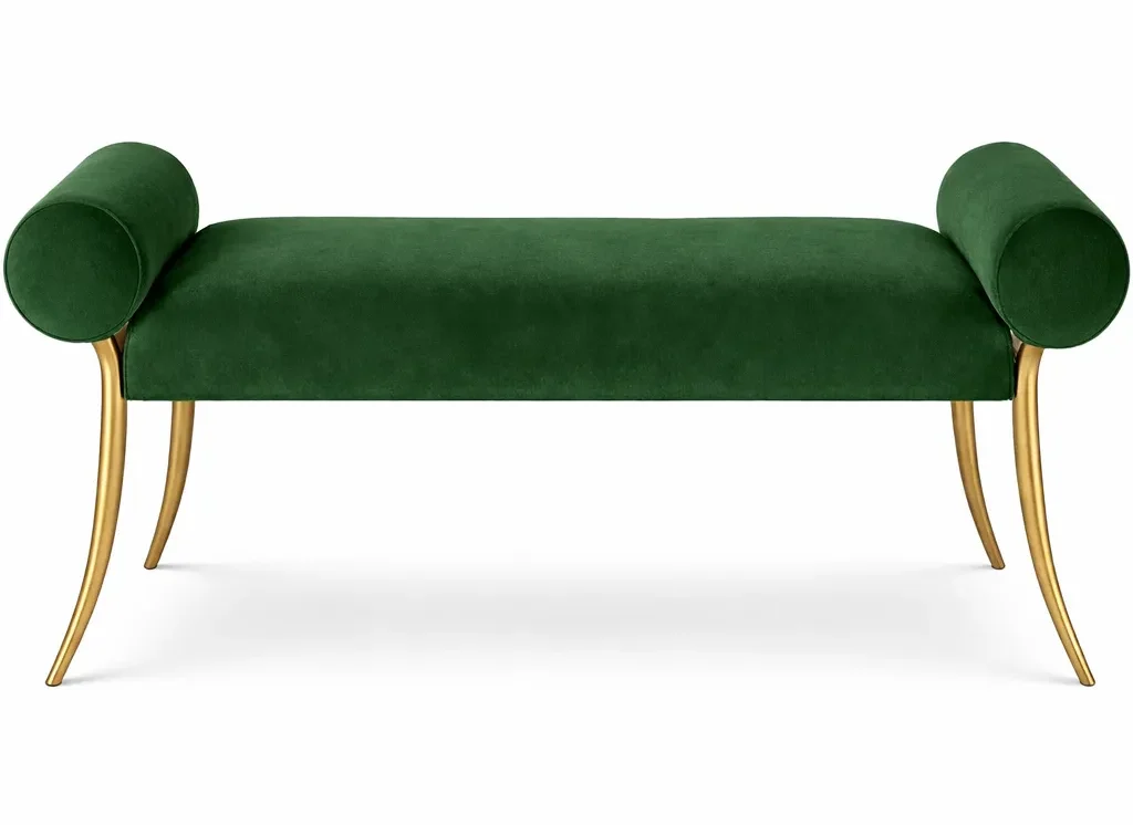 The Gala Bench feels elevated and high-energy, with the spirit and verve of a runway gala. The bench features a modern take on traditional roll-arm design. Also available in By-The-Inch.