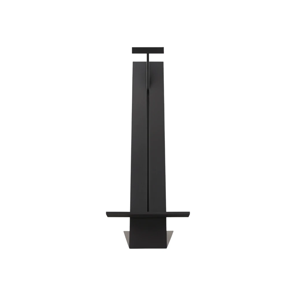 This stylish designer floor lamp doubles as an elegant stand for artwork, making it a perfect accent piece for any art lover’s interior. Crafted from metal.