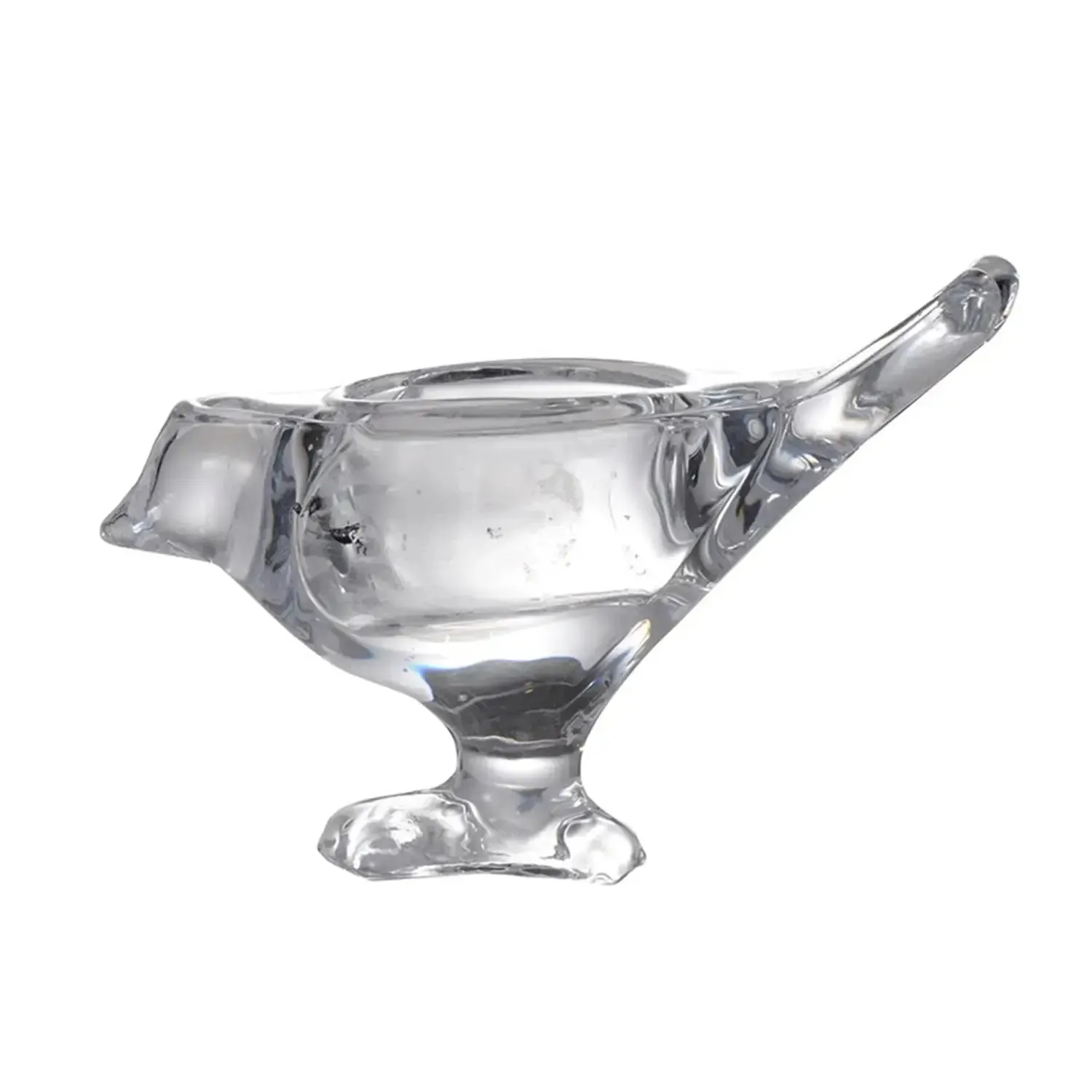 The charming bird-shaped candle holder adds a touch of fantasy with its playful form and delicate shine. This transparent glass candelabra is a delightful addition to a garden-themed sunroom, a kitchen shelf, or even a bathroom shelf. With its simple and pleasant shape, this little bird evokes the beauty of nature, while the cut crystal offers a sense of glamour.