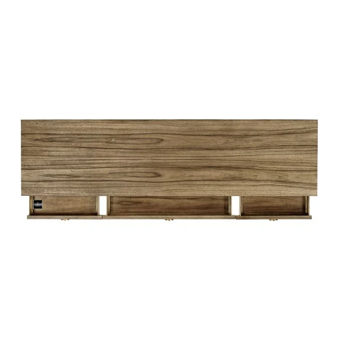 Informed by the symmetry and balance of classic forms, this table is constructed of hardwood and paldao veneers under a transparent lacquer finish. The brass hardware is acid dipped and hand rubbed to achieve a rich, natural patina.