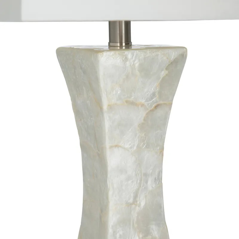 Elegance meets tradition in perfect harmony with the Hopkins Slim Waist Table Lamp. Meticulously crafted from high-quality resin, this lamp boasts a mesmerizing petal-like texture in a warm white hue that gives any space a sense of refinement. Its hourglass shape adds a touch of graceful symmetry, while the dimensional square silhouette brings a contemporary twist to its classic design. Resting upon a crystal base, this lamp exudes a captivating allure that is the epitome of refined beauty.