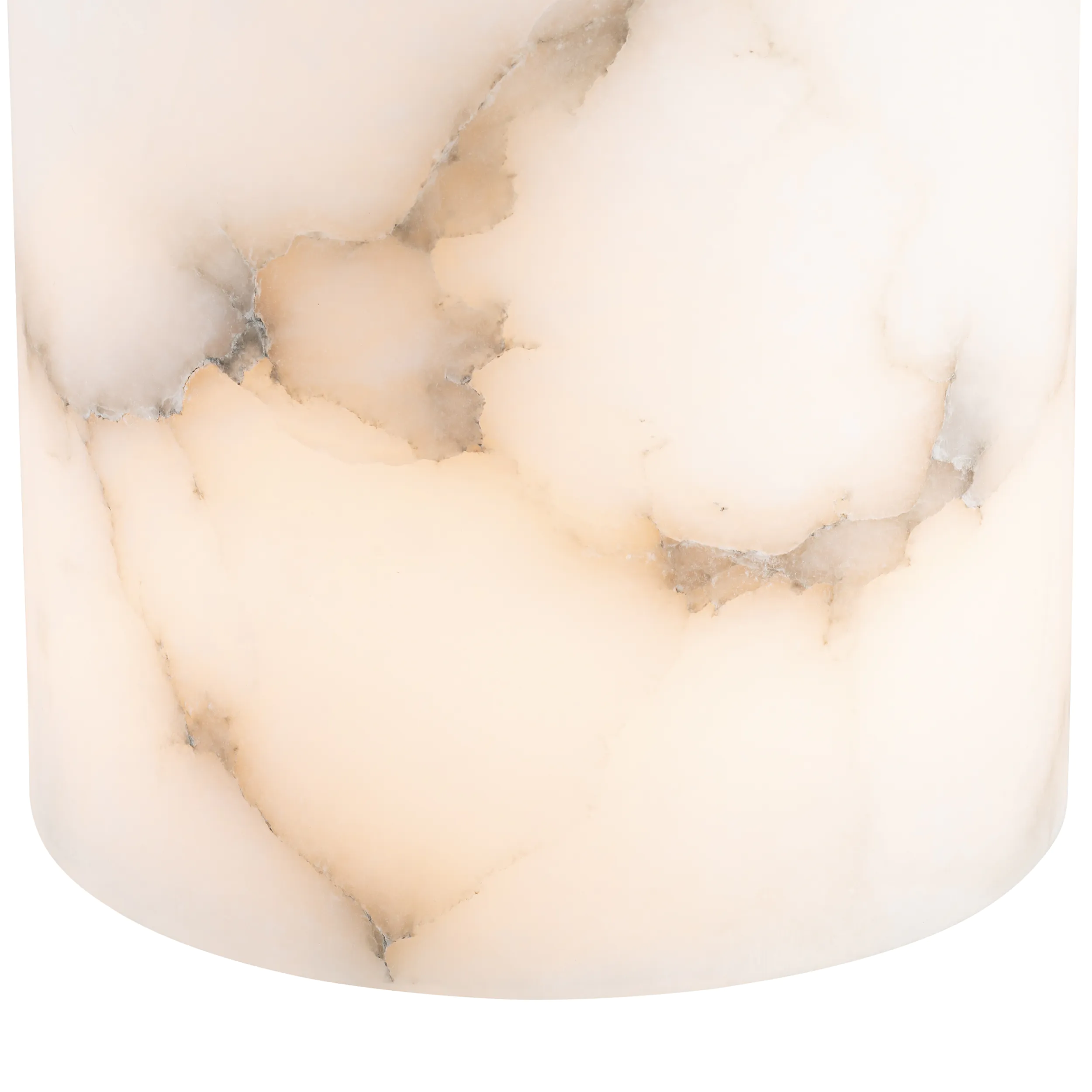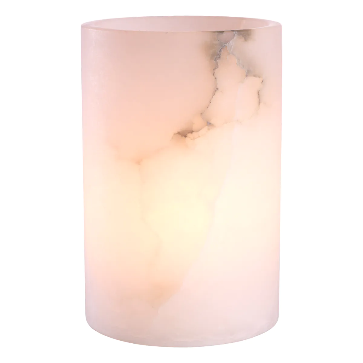 This gorgeous hurricane is made of translucent alabaster and features a subtle vein pattern that gives each piece a truly unique look. Exuding timeless beauty, it casts a warm glow on your interior surroundings. Pair with one or more small Mercer Hurricanes for added dimension.