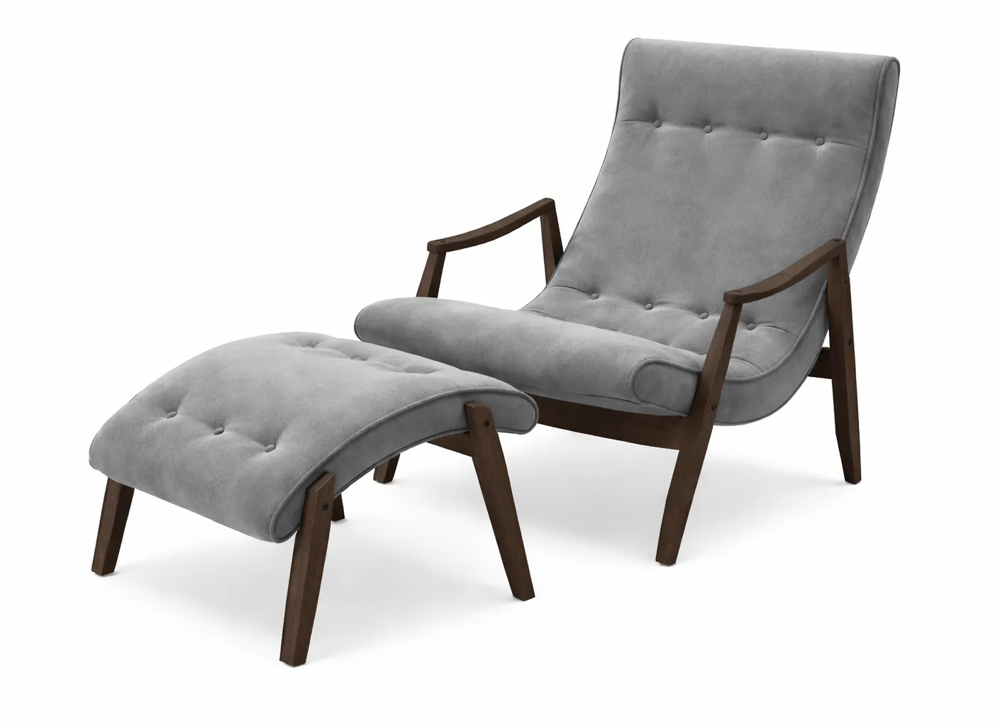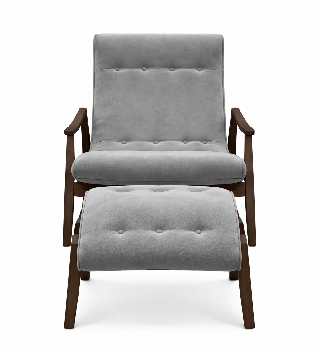 Inspired by an original midcentury heirloom, Jane is fun and fabulous with a deeply scooped high back, which extends into an extra-low seat. Miniature buttons add punch to the upholstery, while wood pegs on the shapely wood arms and legs recall the construction of the original. Incredibly comfortable, Jane features a unique innerspring coil unit in the seat.