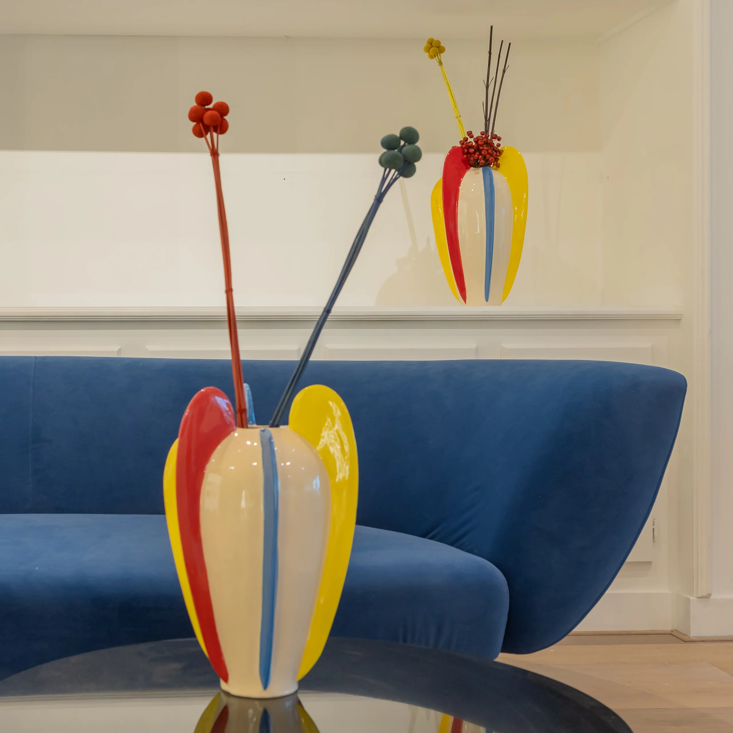 Ceramic. Handmade and very artistic design vase with elegant package of shapes and bold colors