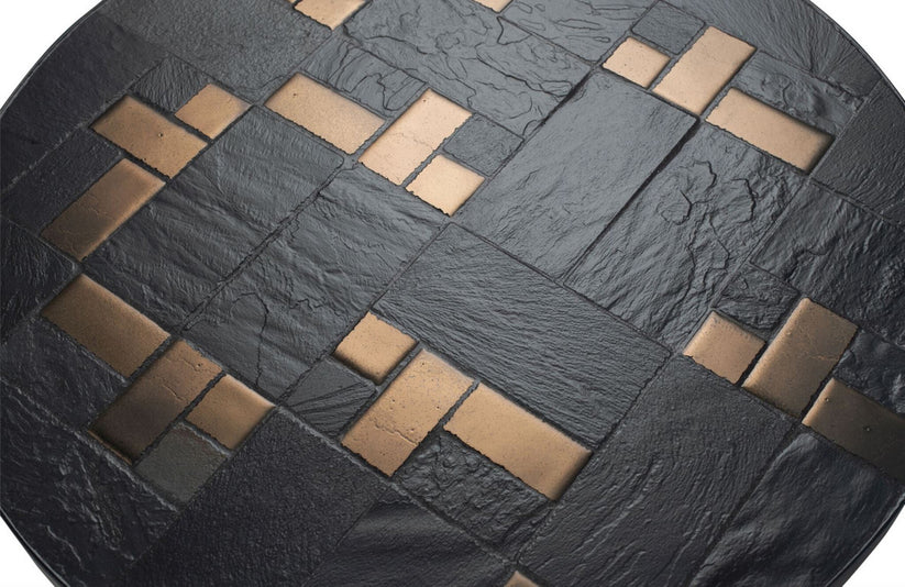 Sleek and minimalist, the Labo Slate Coffee Table by Versmissen is a stunning example of modern design. With its black construction featuring a concrete base, natural slate, and ceramic tile top, this piece exudes contemporary elegance. The round top and pedestal base create a sense of cohesion and balance, adding to its visual appeal.