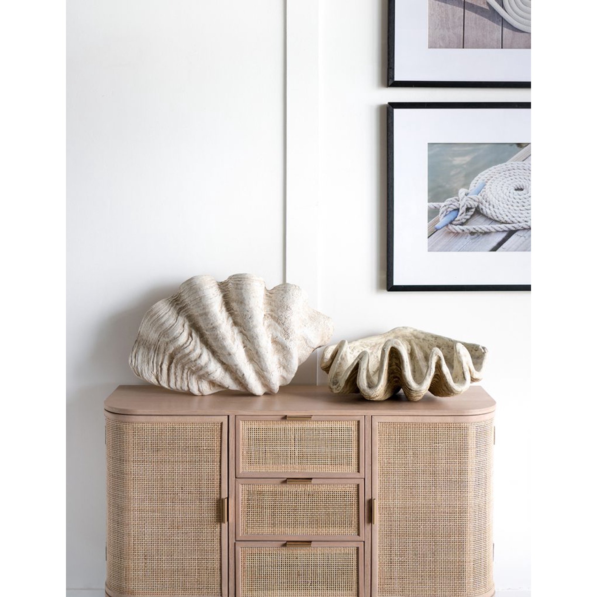 Reminiscent of marble and aged plaster the medium size decorative shell leans toward a traditional style but with a universal appeal