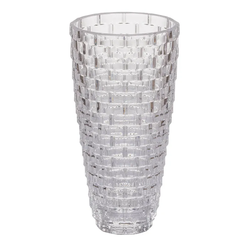 This Tall Vase from the Lexi Collection is sure to shimmer and sparkle in your room. Made from 100% clear glass, this vase features a textured surface and comes in a traditional v-shape basin.
