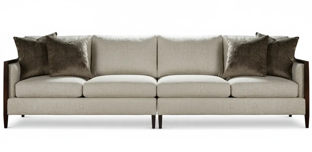 The Lido LAF Loveseat has a masculine presence featuring exposed wood highlighting the shape of the arms. The attached boxed arm cushion adds to the comfort and accentuates the level of tailoring Theodore Alexander is known for. One 20″ throw pillow standard are included with this sectional.