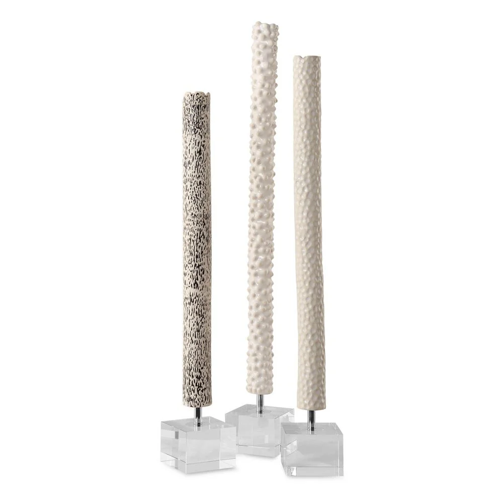 Ceramic constructed trio is inspired by global travels and exhibits a trendy black and white color story. Each is accented by polished chrome and crystal details.