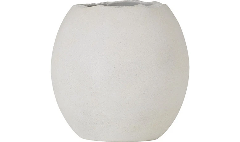 Sculptural and understated, this planter features a rounded form resting on a clean, geometric metal base. Finished in weathered concrete resin, it brings a calm, architectural presence to both indoor and covered outdoor spaces—perfect for highlighting greenery with a modern, refined touch.