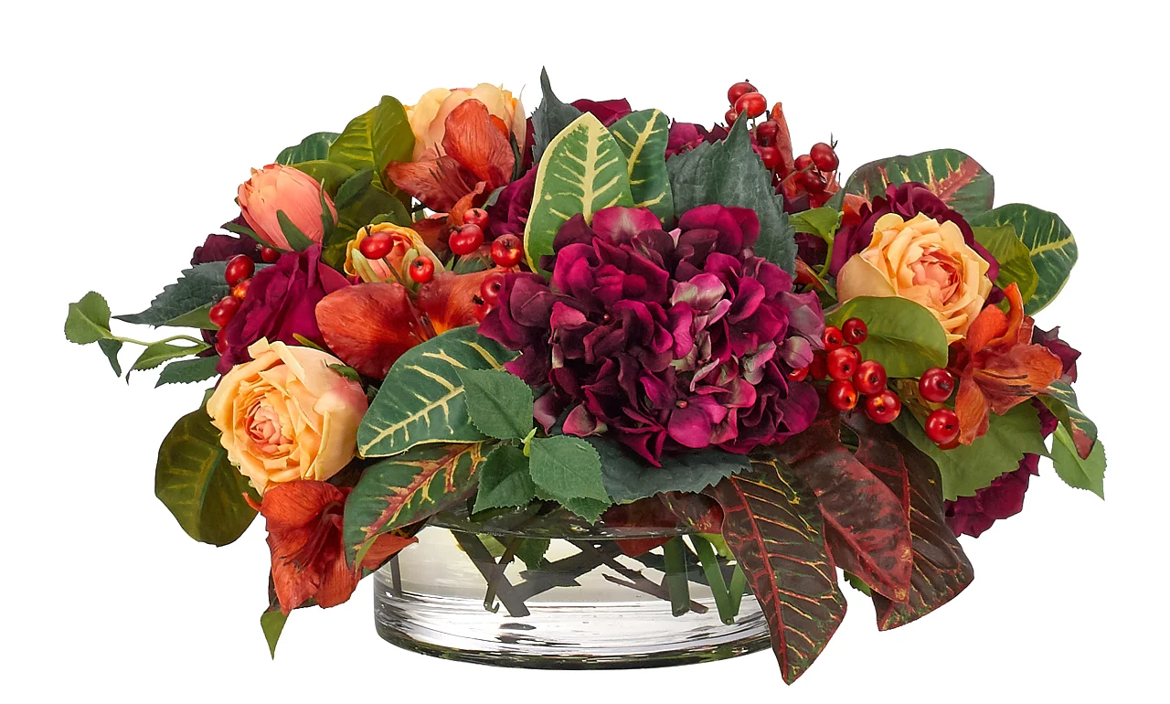 Orange and Fuchsia Rose Hydrangea in a Glass Bowl