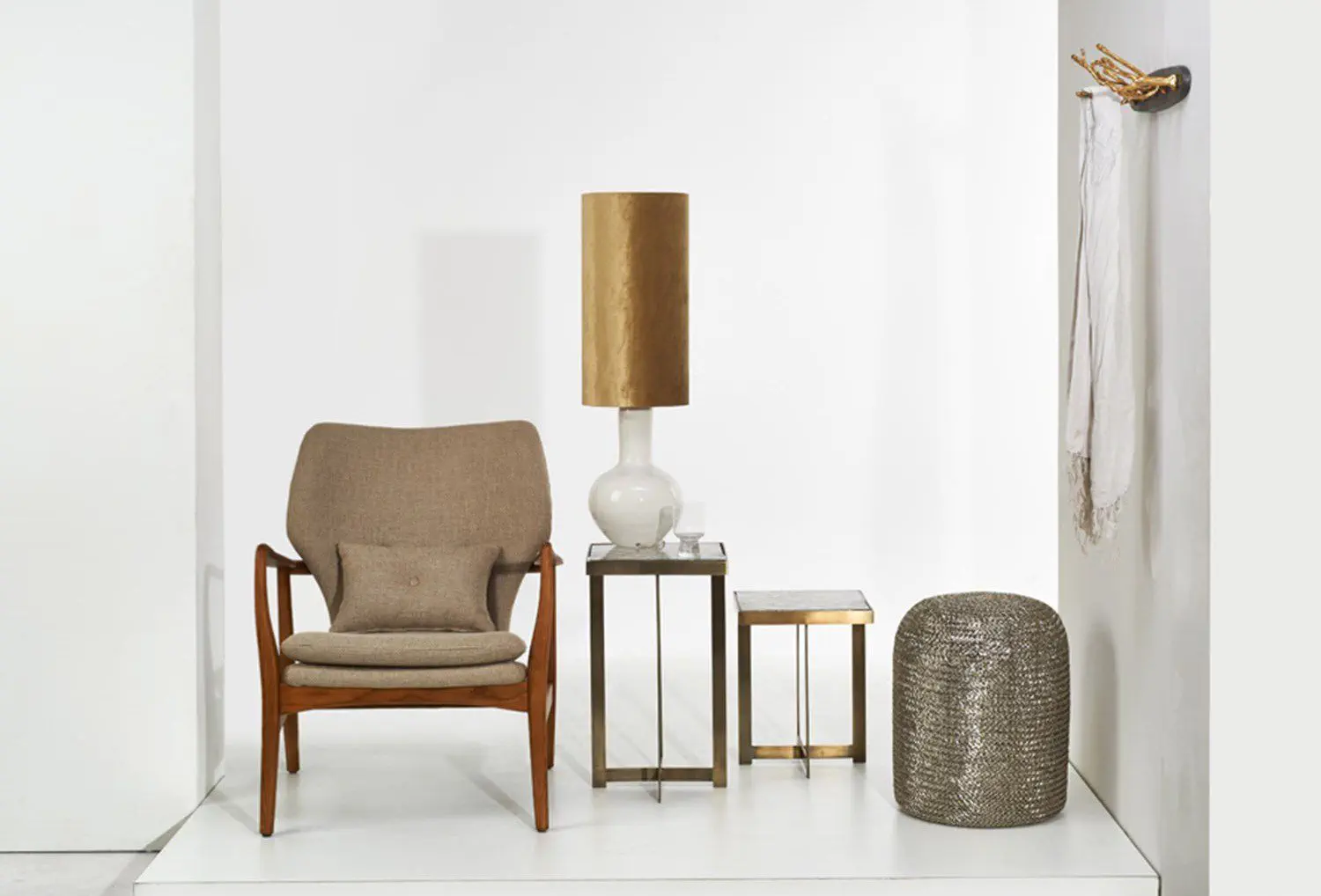 Finish: Antique brass plated stainless steel with casted glass top. Dimension: W30 x D30 x H40 cm.