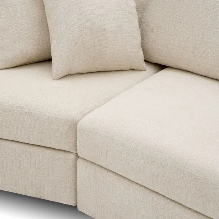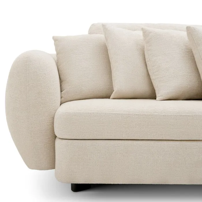 Upholstered in calming Nuoro beige textured upholstery and finished with black feet, the plush, rounded pillowy form of the Sidney is the quintessence of luxury. Its oversized arms, unique curved shape and multiple throw cushions showcases a contemporary look that works with a variety of aesthetics, adding both style and substance to your space.