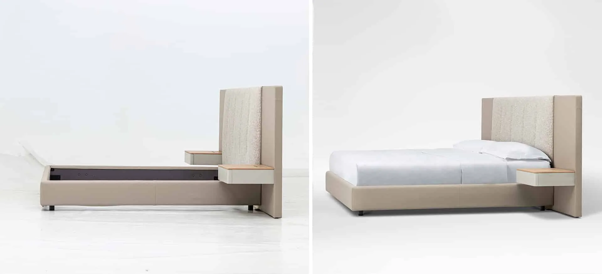 Boasting linear details that everyone can fall in love with, the Stratus Bed (Wide) is a modern interpretation of a classic design. Balancing lounge-worthy comfort with contemporary tailoring, the bed is fully upholstered with vertical stitching along the headboard. Leather and Fabric combination options takes the bed to the next level of indulgence.