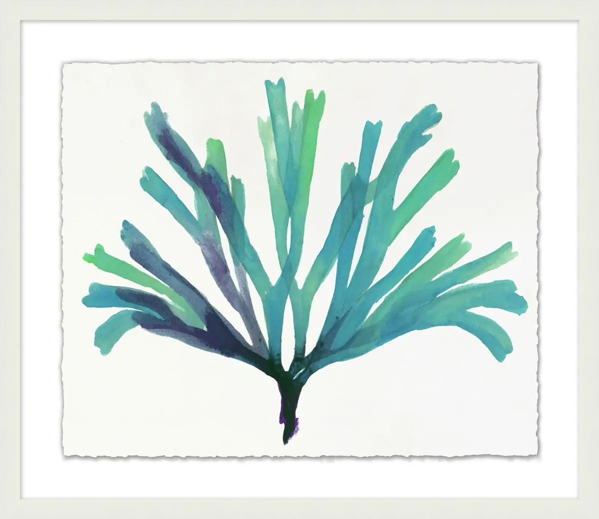 Watercolor artwork inspired by organic coral forms, blending soft turquoise, teal, and deep ocean tones to create a calm, fluid composition. The delicate brushwork evokes natural underwater movement, adding a fresh and contemporary coastal feel.