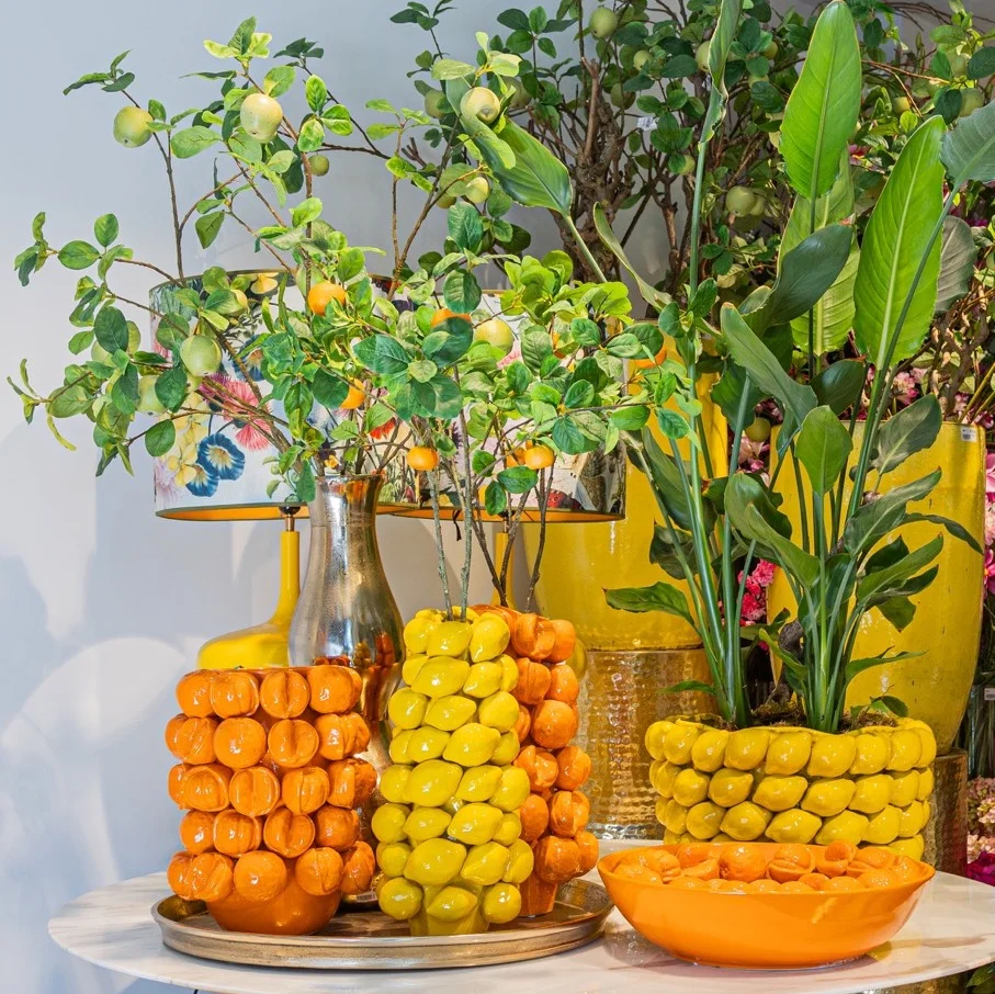 handmade ceramic vase with fruit oranges decoration