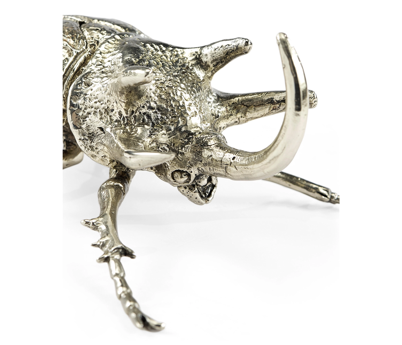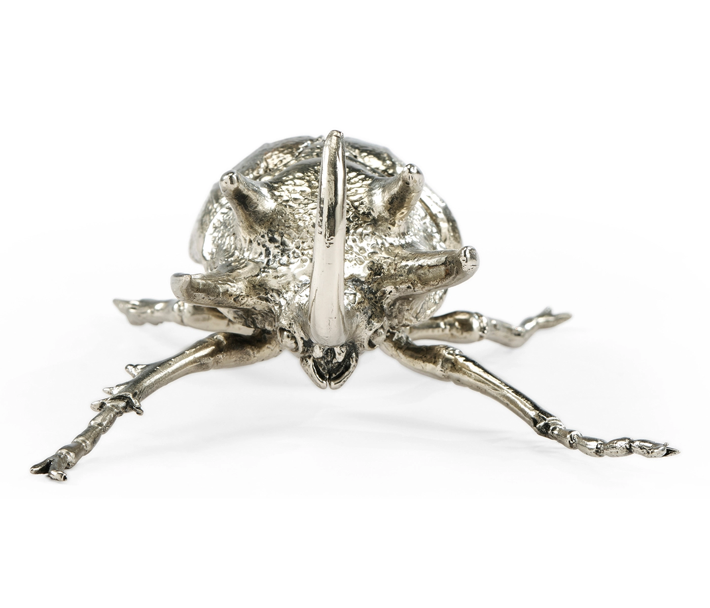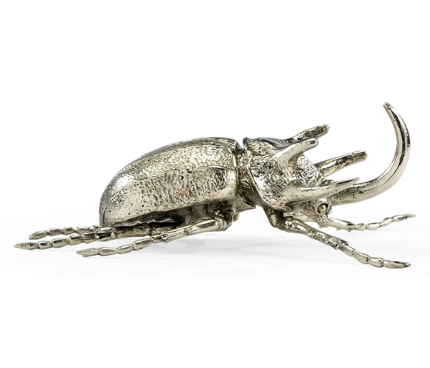 Cast entirely in solid white brass, the Rhinoceros Beetle captures the delicate beauty of the insect. From a paperweight to a shelf display, the object has a myriad of functions to add visual interest in a room.